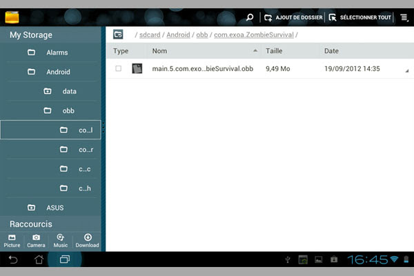 يمكنك أن تقوم بتحديد موقع ملفات OBB من خلال استخدام متصفح به ملفات متقدمة قم بالتوجه إلى ذاكرة الهاتف ثم توجه إلى Android وبعد ذلك قم باختيار ملف OBB.