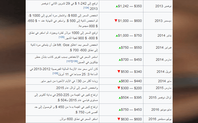 تاريخ قيمة البيتكوين (مقارنة بالدولار الأمريكي)